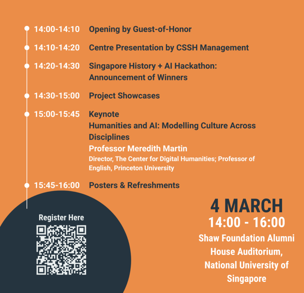 About NUS, Centre for Computational Social Science and Humanities (CSSH) will be having its Official Launch on March 4 Wednesday, 2026! The establishment of CSSH marks a significant milestone for promoting interdisciplinary research and human capital development at NUS and beyond. We are passionate about blending advanced computing techniques with knowledge from the social science […]