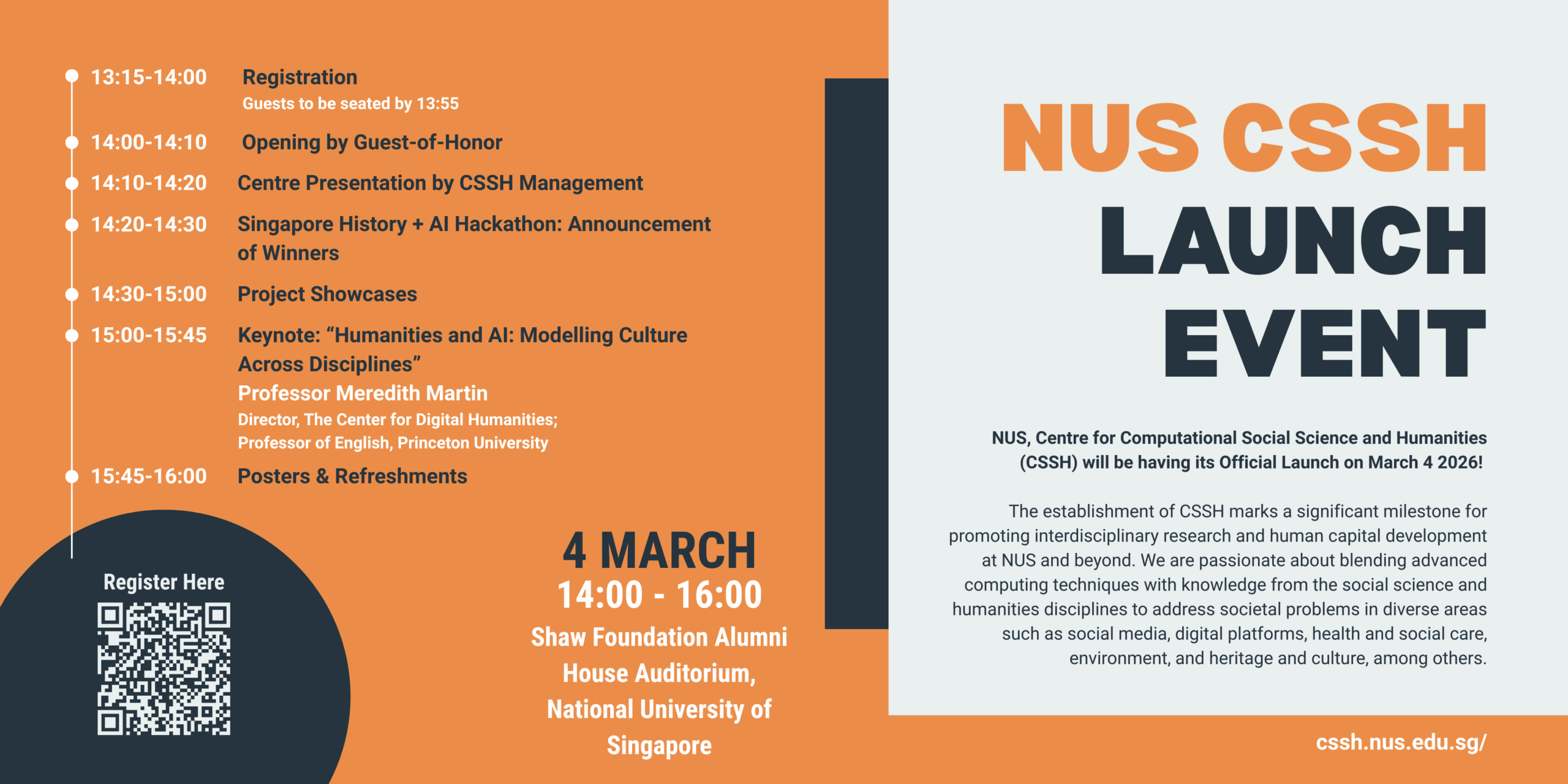 NUS, Centre for Computational Social Science and Humanities (CSSH) will be having its Official Launch on March 4 Wednesday, 2026!
